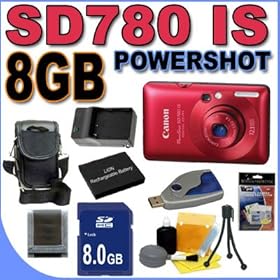 - Canon PowerShot SD780IS 12.1 MP Digital Camera w/ Basic Accesory Kit Includes: Canon PowerShot SD780IS 12.1 MP Digital Camera (Red) + Hard Shell Camera Case w/ Neck Strap + Transcend 8GB SDHC Secure Digital Memory Card + 3-Year Extended Photo America Warranty + Gorillapod Mini Table Top Tripod + USB 2.0 Card Reader/Writer + Micro Fiber Cleaning Cloth + 5PC Cleaning Set + 1PK LCD Screen Protectors