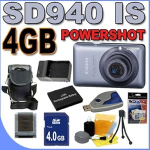 This Kit Includes:1- Canon PowerShot SD940IS 12.1 MP (Blue) Digital Camera w/ Supplied Manufacturer Accessories Brand New USA